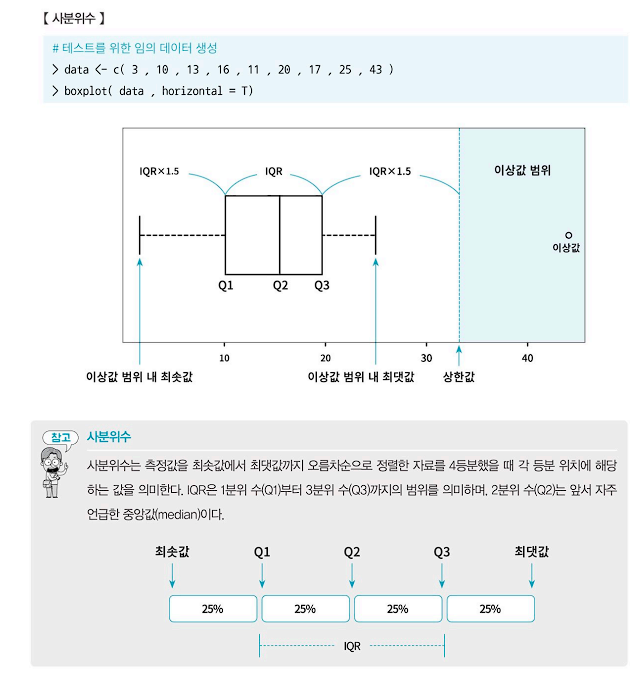- Q1 - 1.5×IQR 이하, Q3 + 1.5×IQR 이상은 이상값