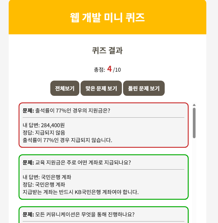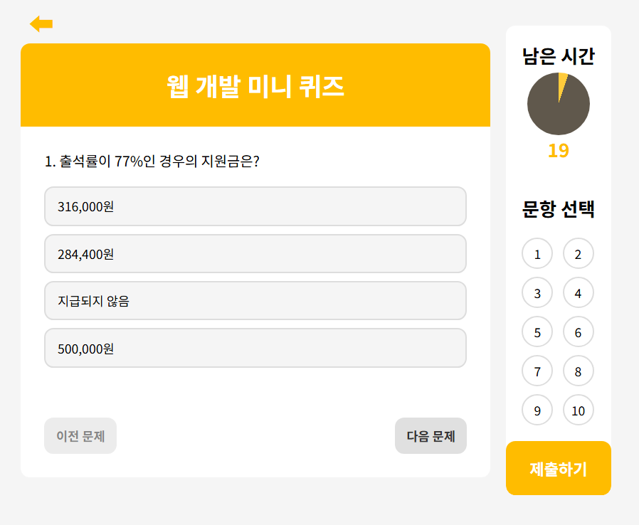반 강사님꼐서 토이프로젝트로 JS를 이용한 미니 퀴즈 게임 과제를 팀플로 내주셨어요.