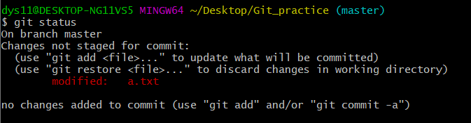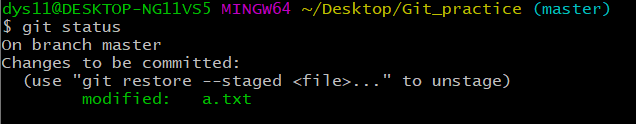$ git add a.txt # 수정된 파일을 다시 스테이징 -> "버전 관리 해줘~"라는 의미