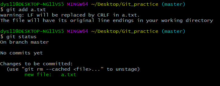 - `$git add a.txt` 는 a.txt만 커밋 대기 상태