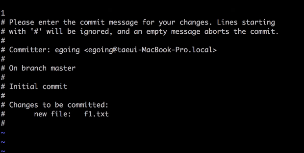 # 메세지 입력 후 ESC -> :wq 로 저장하고 종료
