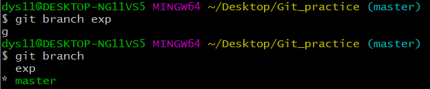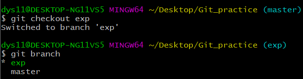 $ git checkout master # exp -> master 병합하려면 master로 체크아웃하고 master에서 merge