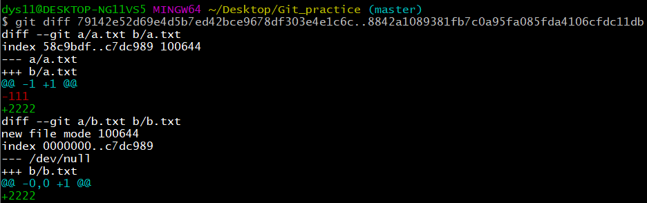 $ git diff id1..id2 # 내가 원하는 두 개의 버전 간 차이 확인
