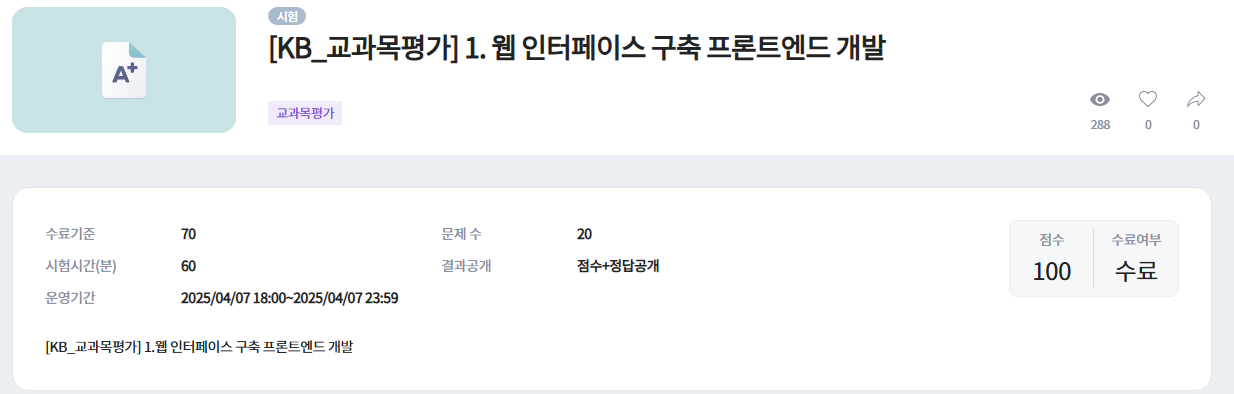 4월 4일엔 첫 교과목 평가가 있었는데요,
