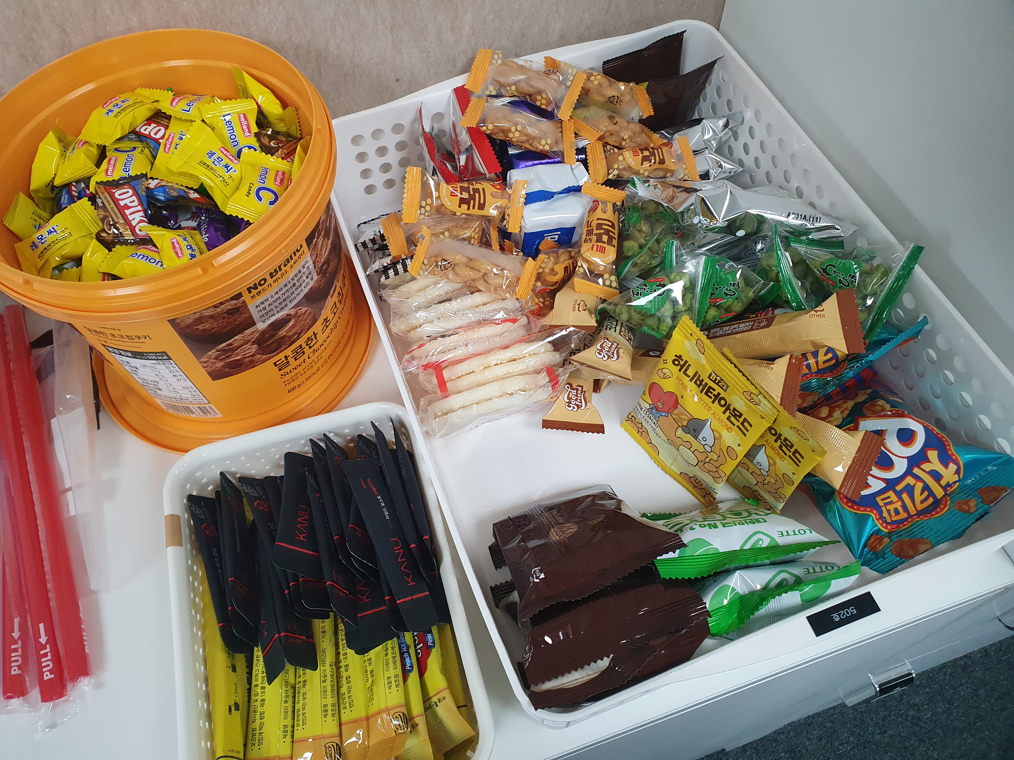 매주 월요일마다 받는 다과 (인기가 많아서 조금만 시간 지나면 다 사라져요..)