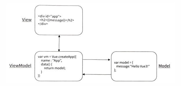 - Vue는 MVVM 아키텍처 기반으로 동작