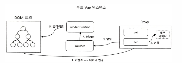 - 데이터의 변경사항 감시, 값 변경 시 렌더링 다시 유도