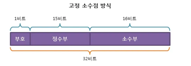 메모리를 정수부와 소수부로 고정 분할하여 처리하는 방식