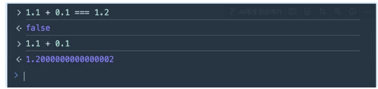 브라우저 콘솔창에서 `console.log(0.1 + 0.2);` 을 입력해보자.