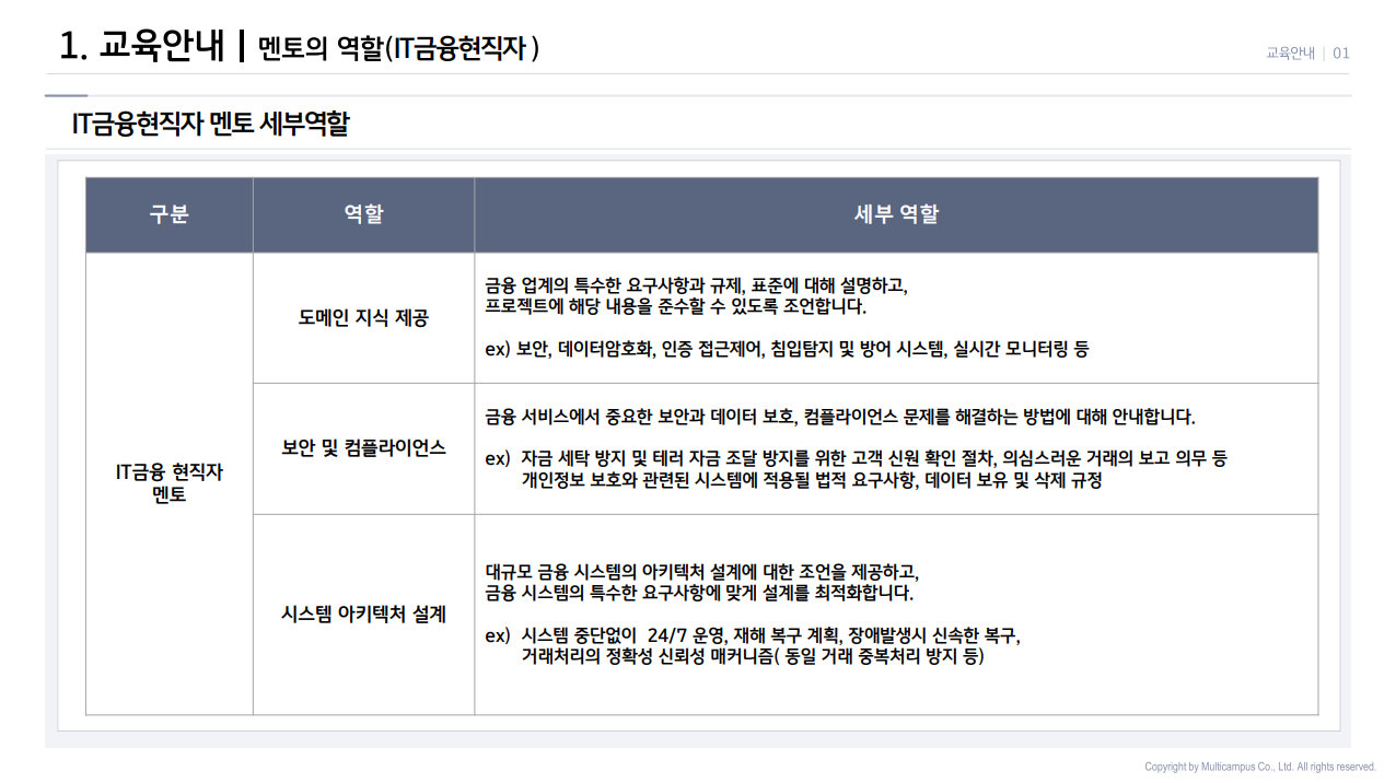 현업 전문가들의 멘토링을 받으며 실무 중심의 IT취업교육이 왜 중요한지 몸소 체감할 수 있을 거예요.