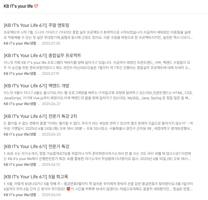 어느덧 8월이 되었고, KB It's your life 6기는 끝이 보이고 있어요.