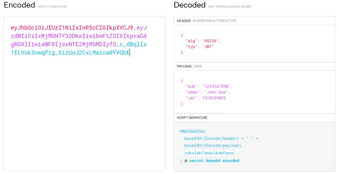 각 부분은 JSON 형태로 되어 있고 , `Base64Url`로 인코딩된 후 점(.)으로 연결됩니다.