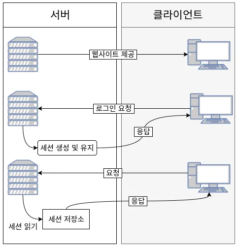 사용자가 로그인하면 서버가 세션을 만들어서 저장해두고,