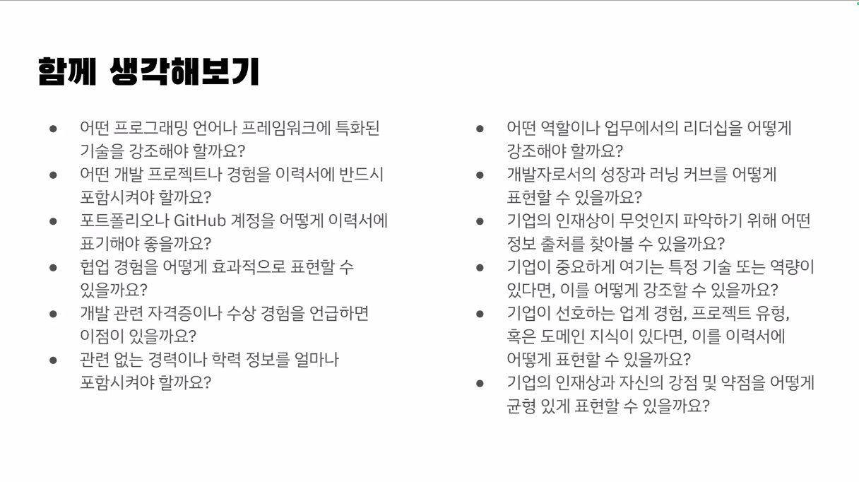 특히 강사분이 실제로 채용도 해보시고 개발도 많이 해보신 분이라서,