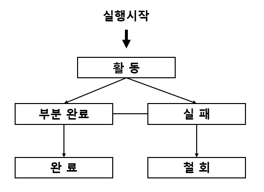 - 비정상: 활동(또는 부분완료) → 실패 → 철회(롤백)