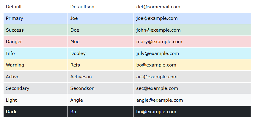 | `.table-danger` | 빨간색 – 위험 또는 부정적 작업 |