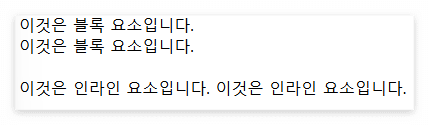 | 인라인 요소 | `<span>`, `<a>` 등 (줄바꿈 X) |