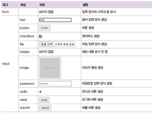 | 입력 태그 | `text`, `password`, `file`, `checkbox`, `radio`, `hidden` 등 |