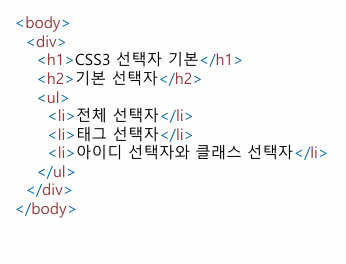 - 선택자는 HTML 요소를 선택해 스타일을 적용할 때 사용하는 기본 도구
