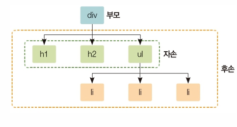 | 자손 선택자 | 특정 요소의 바로 아래 자식 요소 선택 | `div > p {}` |