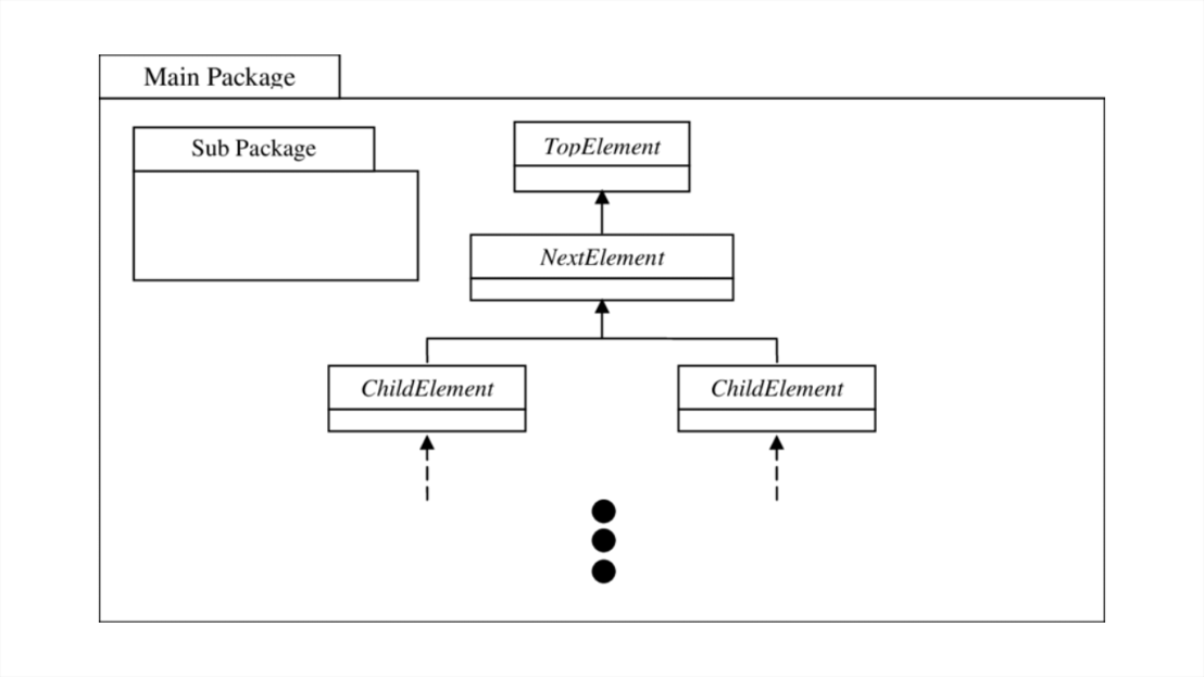 - 패키지(Package): 패키지 간 의존/구성 관계로 모듈화 구조 표현.