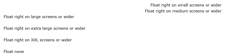 <div class="float-xxl-end">Float right on XXL screens or wider</div><br>